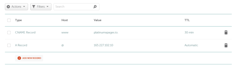 3. Add 1 CNAME record, with host = www, value = www.heroplusfunnels.com/ and 1 A record with host = @ and value = 165.227.102.10 (make sure to copy and paste so there are no typos)